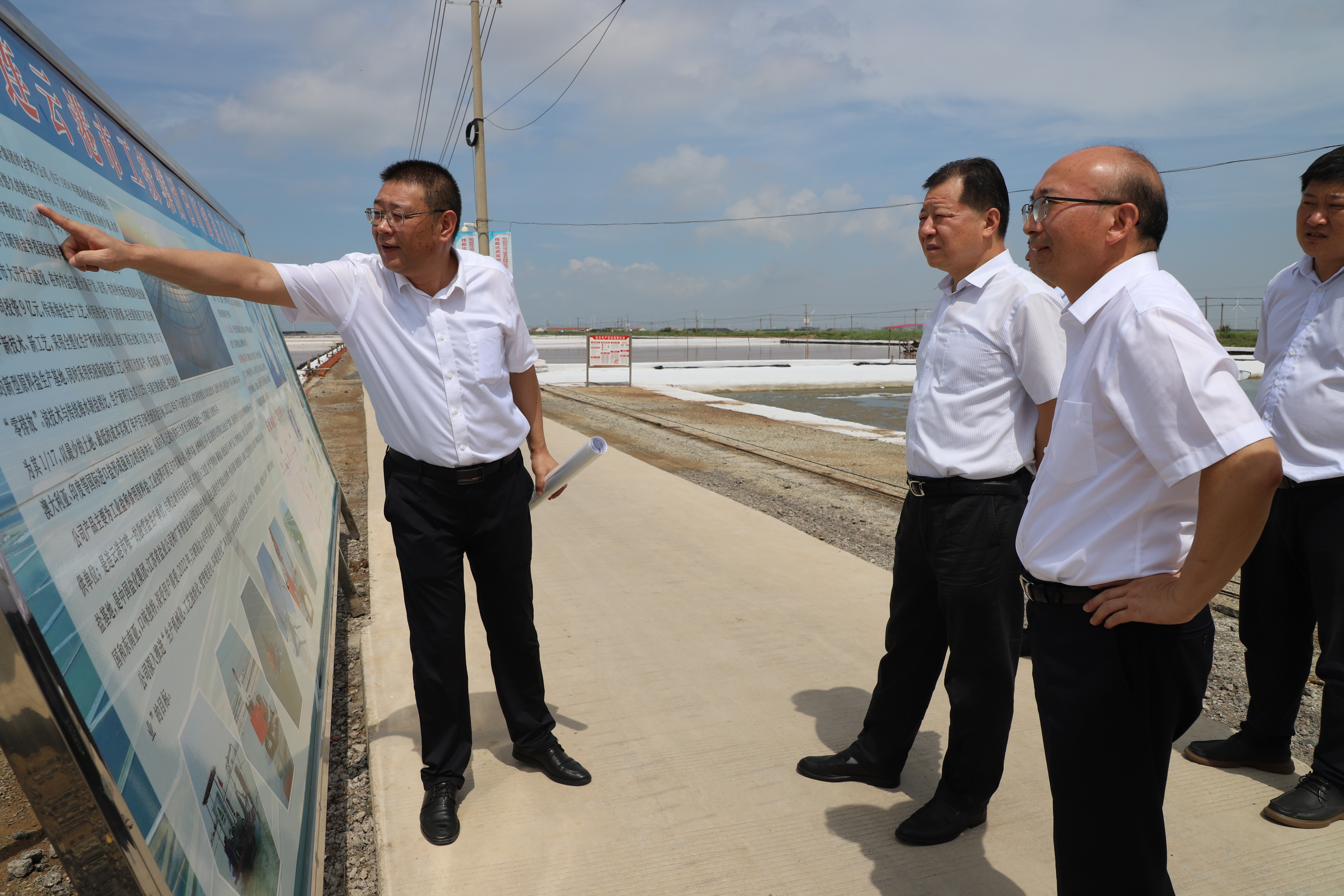 8月2日上午,連云港市副市長(zhǎng)高圣華在集團(tuán)公司黨委書記、董事長(zhǎng)丁銳的陪同下調(diào)研日曬制鹽生產(chǎn)情況。市政府辦公室副主任孫京海、秘書八處相關(guān)負(fù)責(zé)同志,灌西投資公司負(fù)責(zé)人參加調(diào)研。