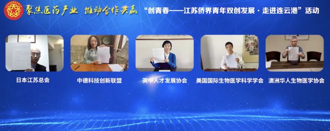 活動中,集團公司通過線上方式,與日本江蘇總會、中德科技創(chuàng)新聯(lián)盟、英中人才發(fā)展協(xié)會、美國國際生物醫(yī)學學會、澳洲華人生物醫(yī)學科學協(xié)會等海外僑社團簽署了合作意向書;集團公司國際醫(yī)藥創(chuàng)新產(chǎn)業(yè)園與4家省內僑青企業(yè)現(xiàn)場簽訂合作協(xié)議。