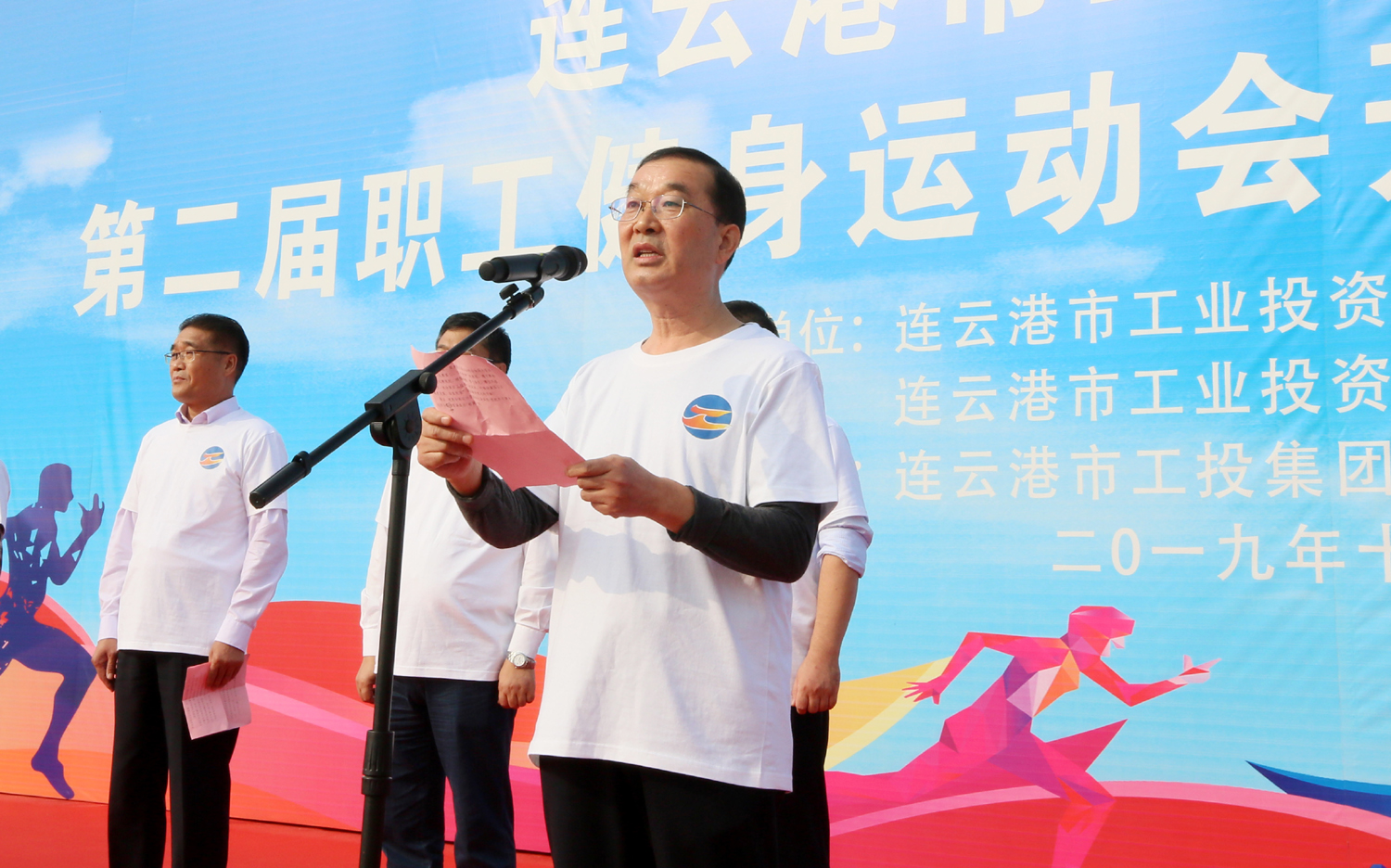 金秋十月,丹桂飄香。10月24日上午,美麗的徐圩新區(qū)云湖廣場彩旗招展,歌聲飛揚,為慶祝中華人民共和國成立70周年,豐富職工業(yè)余文化生活,由集團公司、集團公司工會主辦,徐圩投資公司承辦的集團第二屆職工健身運動會開幕式暨健步走活動在這里隆重舉行。集團公司黨委書記、董事長楊龍宣布第二屆職工健身運動會開幕,并為健步走活動發(fā)令。總經(jīng)理胡建明致開幕詞。工會主席劉承志主持開幕式。 本次運動會圍繞“美麗中華·文明工投·快樂職工”活動主題,來自全公司各條戰(zhàn)線的17支代表隊1200多人次的運動員參加拔河、跳繩、乒乓球、健步走等項目的角逐。他們以勇奪第一、超越自我的競賽精神和攜手奮進、合力拼搏的競賽風(fēng)尚,充分展示工投人追求卓越、共建和諧的優(yōu)秀精神風(fēng)貌。本次運動會將對個人單項比賽前六名、集體項目比賽前三名及道德風(fēng)尚獎獲得者給予表彰。