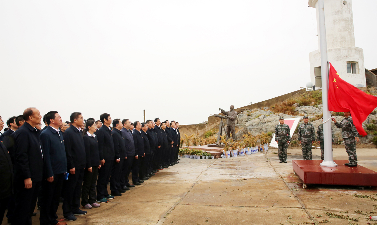為進一步踐行“不忘初心、牢記使命”主題教育,追尋“人民楷模”王繼才、王仕花夫婦的守島精神,10月10日,集團公司黨委書記、董事長楊龍,總經(jīng)理胡建明等黨委領(lǐng)導(dǎo)班子成員與機關(guān)部分黨員、各單位黨內(nèi)先進代表等共100人,冒雨赴江蘇省干部黨性教育基地——開山島,開展“學習人民楷模王繼才、踐行初心使命勇?lián)敗秉h性教育活動。 在面積只有兩個足球場大的開山島上,全體黨員參觀了王繼才同志生前工作生活過的場所,看望慰問王仕花和守島民兵,舉行莊嚴的升國旗和重溫入黨誓詞儀式。在王繼才先進事跡展覽室,一件件實物和一幅幅圖片,從不同角度、不同側(cè)面生動的再現(xiàn)了王繼才“島就是家、島就是國”,扎根海島、獻身海防的先進事跡和奉獻精神。活動期間,大家還觀看了紀錄片《守島32年》,認真聆聽了王仕花講授的關(guān)于守島衛(wèi)國32年,用無怨無悔的堅守和付出,在平凡的崗位上書寫了不平凡人生華章的微黨課。