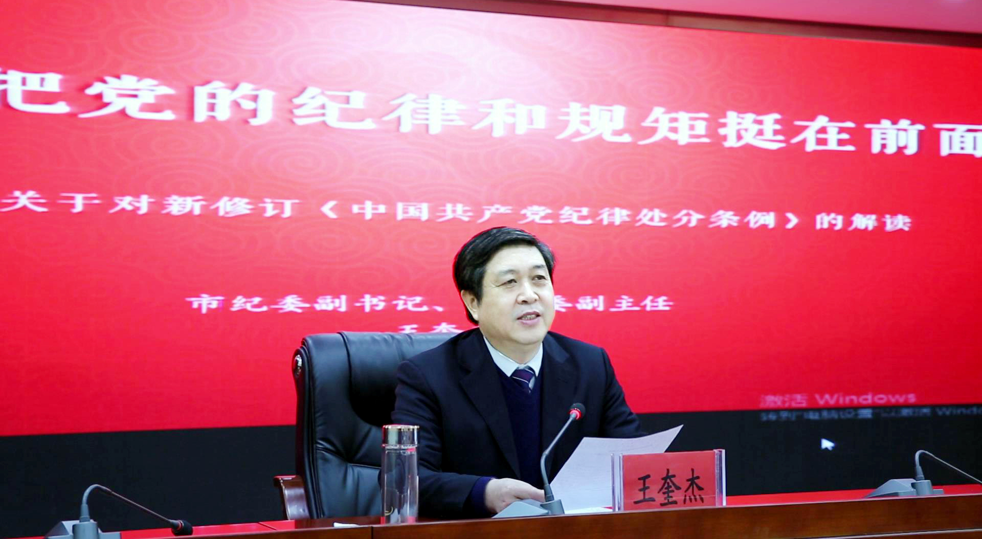 王奎杰圍繞要充分認識新《條例》的重大意義,切實增強學(xué)習(xí)貫徹的自覺性和堅定性;要認真學(xué)習(xí)新《條例》的增改內(nèi)容,引導(dǎo)黨員干部做到心有所畏、言有所戒、行有所止;要迅速掀起新《條例》學(xué)習(xí)宣傳熱潮,著力推動全面從嚴治黨向縱深發(fā)展等三個方面,對《條例》進行了深入解讀,報告內(nèi)容豐富、條理清晰、重點突出,對廣大黨員干部更好地學(xué)深學(xué)透《條例》具有很強的指導(dǎo)意義。