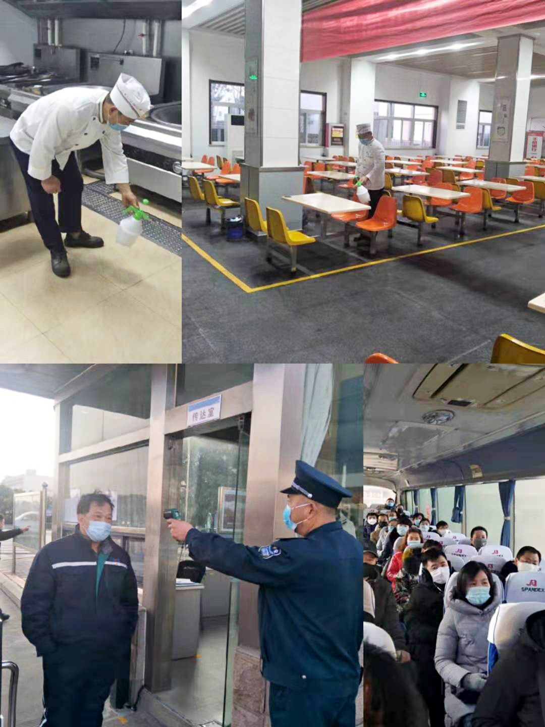 全力做到“三個全覆蓋”。一是消殺全覆蓋,做到無死角。結(jié)合疫情防控實施方案全面開展衛(wèi)生整治消殺,對進(jìn)廠車輛、食堂、廁所、辦公區(qū)、操作平臺、作業(yè)電梯等進(jìn)行全面消毒,每4小時進(jìn)行噴灑消毒液消毒。二是摸排全覆蓋,做到無縫隙。以部門為單位進(jìn)行全員摸排并建立日報制度。在公司門口使用溫度檢測儀器測量入廠人員體溫,體溫正常允許進(jìn)入,發(fā)現(xiàn)體溫異常人員立即上報公司安全部或者值班領(lǐng)導(dǎo)執(zhí)行應(yīng)急隔離救援。對外地回廠人員,特別對疫區(qū)或途徑疫區(qū)的到廠人員進(jìn)行重點摸排,對與武漢方面人員有接觸的員工采取暫停上班、居家隔離措施。三是宣傳全覆蓋,做到無遺漏。利用公司宣傳欄、紅色長廊、網(wǎng)站、公眾號、微信群等宣傳陣地開展宣傳培訓(xùn)。將公司的防控措施、應(yīng)急預(yù)案、就醫(yī)流程、疫情防護(hù)等應(yīng)知應(yīng)會的防疫知識傳達(dá)到每一位員工,引導(dǎo)他們科學(xué)防疫。