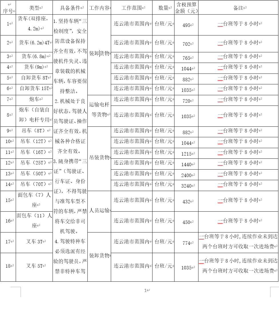 2.采購內容:連云港工投集團供電工程分公司機械、車輛租賃