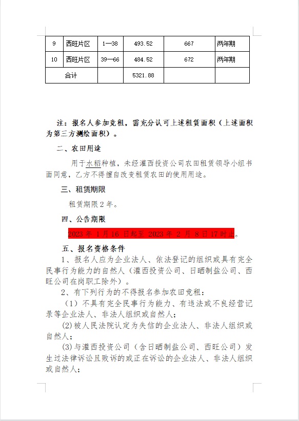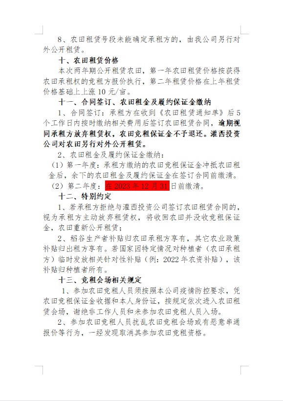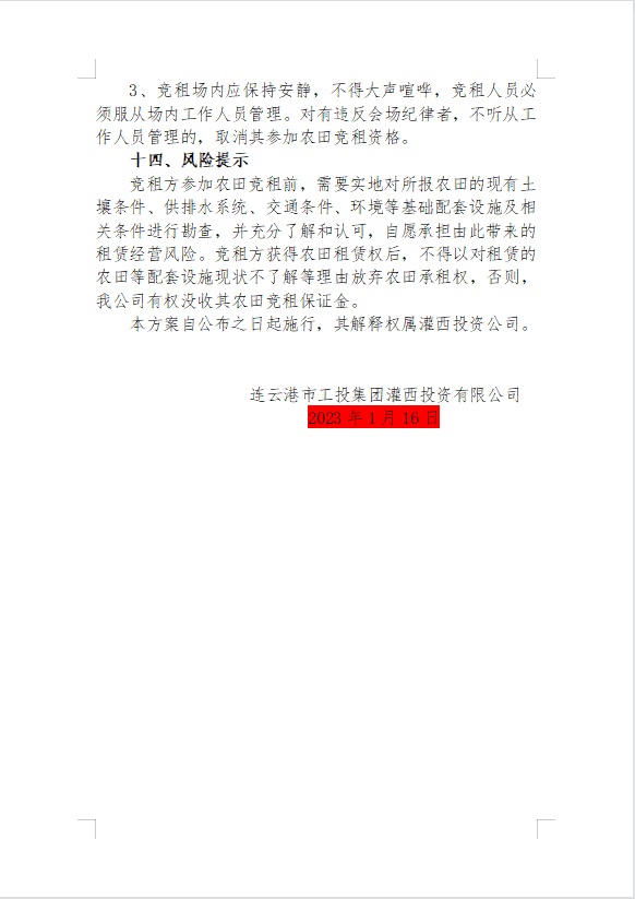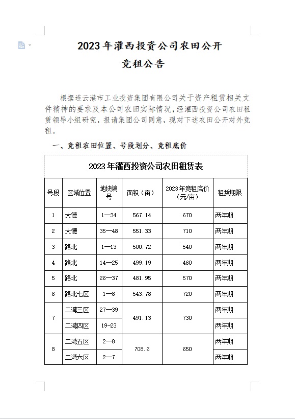 2023年灌西投資公司農田公開競租公告