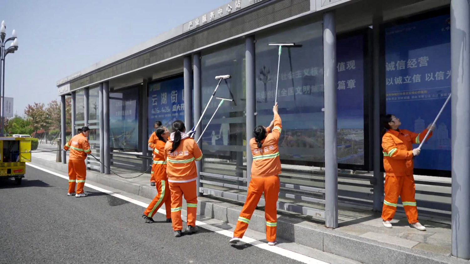 龔飛作為女子班班長(zhǎng),她不僅要管理好徐圩新區(qū)核心區(qū)域50萬平方米道路保潔和8個(gè)站臺(tái)清洗、施工路段的垃圾清撿“規(guī)定動(dòng)作”,同時(shí)還要完成保潔面積40000平方米“自選動(dòng)作”。
