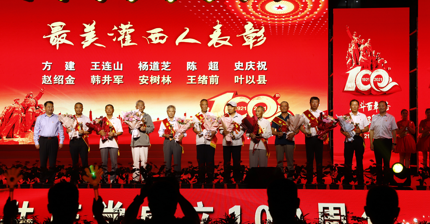 演出期間,對評選出的“最美灌西人”、10名優(yōu)秀員工和優(yōu)秀黨務(wù)工作者代表進(jìn)行了表彰。