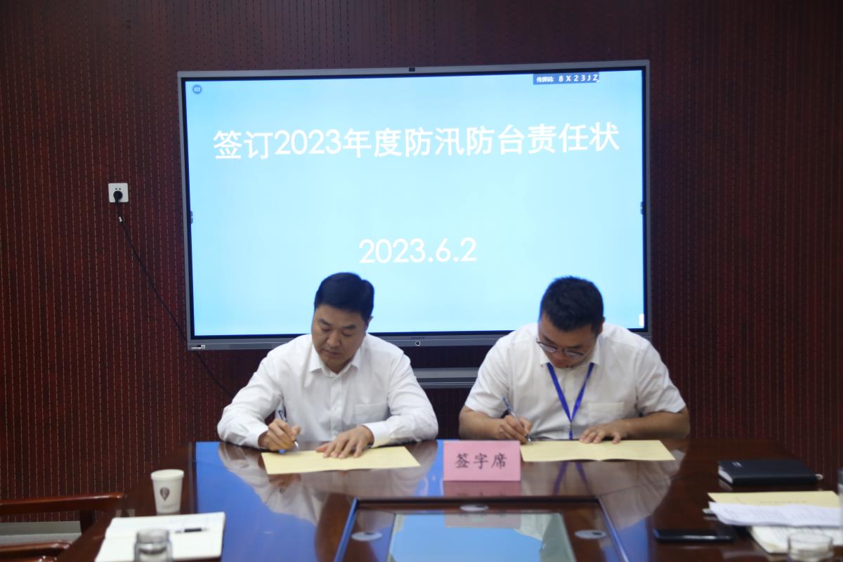 會上,各單位、項(xiàng)目部、園區(qū)簽訂了《2023年度防汛防臺責(zé)任狀》。