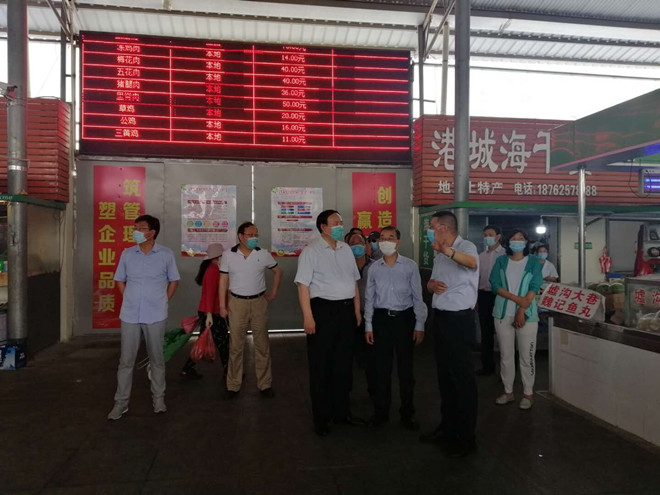 6月26日,連云港市政府副市長徐家保到巨龍農(nóng)貿(mào)市場檢查雙創(chuàng)和防疫工作,集團公司黨委副書記、總經(jīng)理胡建明,公司總經(jīng)理孫政權、副總經(jīng)理伏運余陪同檢查。