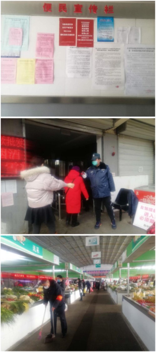 強化市場內(nèi)部管控。為進一步避免人群大規(guī)模聚集,調(diào)整市場開放、關(guān)閉時間,緩解人流量,勸導群眾不信謠、不傳謠,無需恐慌搶購。督促農(nóng)貿(mào)市場100多戶經(jīng)營戶每天提前全部做好物資的擺放,所有進出市場人員保留1個進出口通道依次進出,并指派專人在入口負責體溫檢測;對進入市場的等各類車輛實行指定區(qū)域有序停放,確保市場內(nèi)無占道現(xiàn)象。