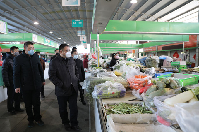 為及時掌握疫情,全面落實防控措施,堅決打贏疫情防控阻擊戰(zhàn)。1月30日下午,集團公司黨委書記、董事長楊龍,黨委副書記、總經(jīng)理胡建明,工會主席劉承志、總經(jīng)濟師陳如軍輕車簡從,到巨龍農(nóng)貿(mào)市場防疫第一線實地督導(dǎo)檢查,公司經(jīng)理孫政權(quán)、黨委副書記王志軍、副經(jīng)理伏運余、經(jīng)理助理朱兵陪同視察。