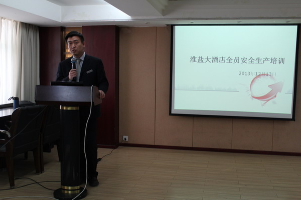 12月13日下午,淮鹽大酒店特組織全體員工在進行安全生產培訓。