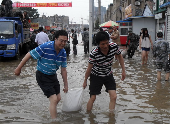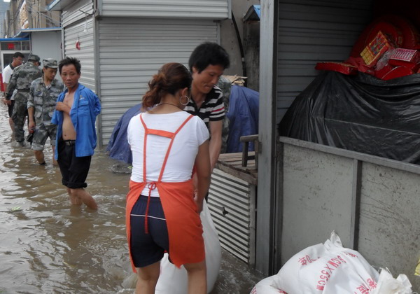 7月8日凌晨3點起,降雨強度大 、雨量大,巨龍農(nóng)貿(mào)市場積水深度30公分,最深處達60公分,兩個配電房、經(jīng)營出租房、職工宿舍等全部被淹。該單位立即啟動抗洪應(yīng)急預(yù)案,全體職工幾天來吃住在抗洪工作一線,幫助經(jīng)營戶轉(zhuǎn)移糧食,轉(zhuǎn)移被淹戶3家,建防洪堤6個; 對兩個配電房進行晝夜值班、排水。