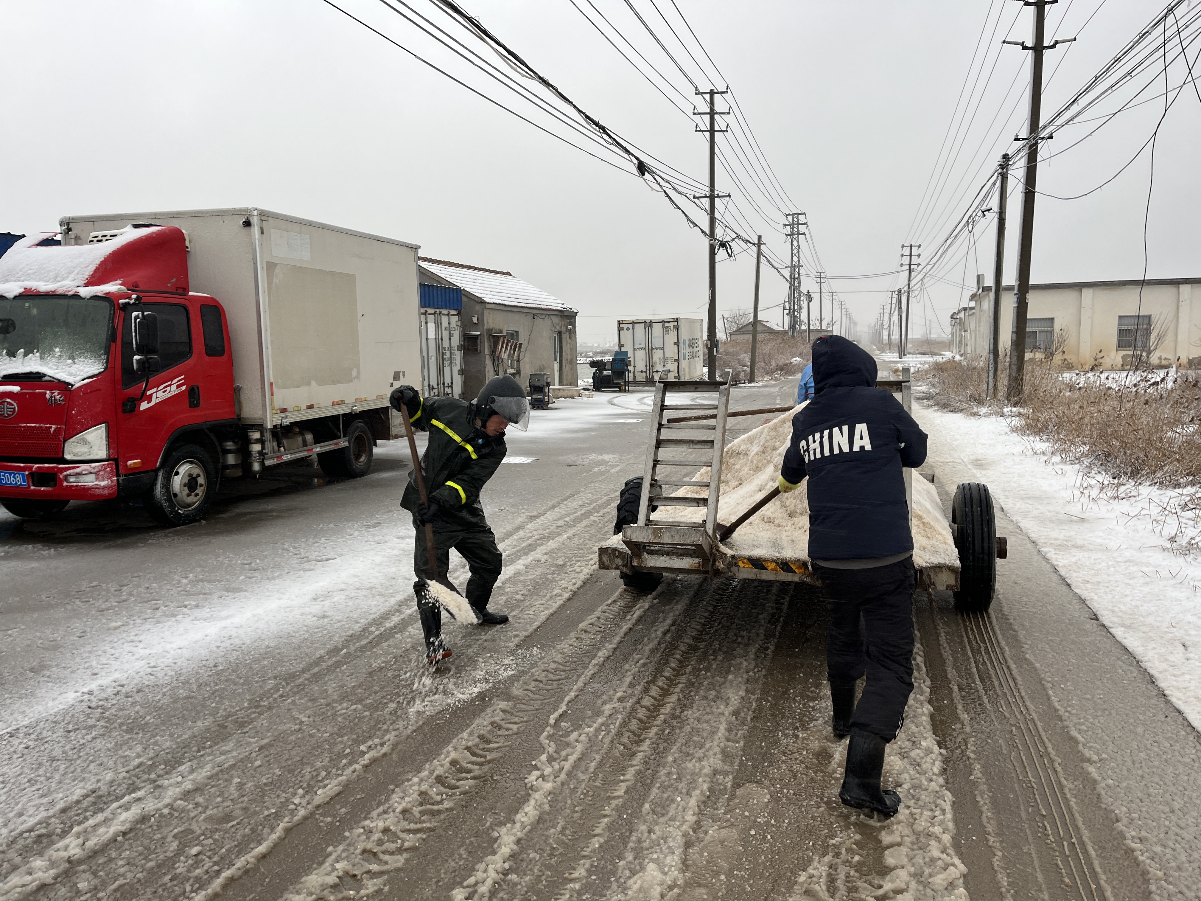 以雪為令,全力奔赴清雪戰(zhàn)一線。隨著降雪量增大,采取“人工+機(jī)械”的作業(yè)方式,使用自產(chǎn)原鹽融雪劑對(duì)轄區(qū)中二圩居民點(diǎn)、鹽灘內(nèi)部道路、辦公區(qū)域等20余條主次干道不間斷地毯式清雪除冰作業(yè)。清雪現(xiàn)場(chǎng),大家不畏嚴(yán)寒,積極行動(dòng),鏟的鏟、推的推,干得熱火朝天,開(kāi)辟出一條方便群眾出行的“安全路”。截止目前,已累計(jì)出動(dòng)車(chē)輛30余臺(tái)次,300余人次參與清雪除冰行動(dòng),確保職工群眾“雪中通行,雪后路清”。