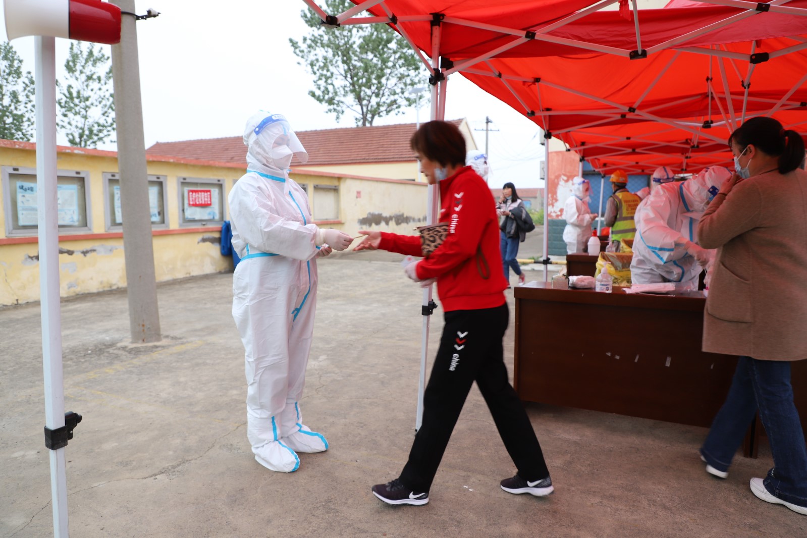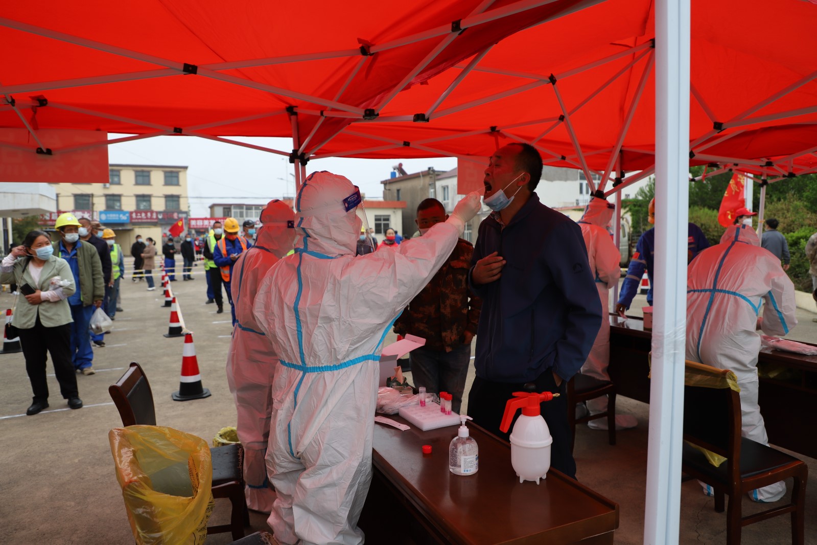 為了配合做好這一輪的全民核酸檢測工作,從核酸檢測前期的場地準(zhǔn)備到居民隊伍的秩序維持,從協(xié)助醫(yī)護(hù)人員做好消毒、信息錄入到現(xiàn)場管理,灌西投資公司廣大志愿者奮勇上前,全過程參與其中。由于之前天氣有雨,早在凌晨3點多鐘,公司志愿者們就來到現(xiàn)場部署核酸檢測場地,及時做好設(shè)置隔離區(qū),劃出一米線等工作,確保了早上5點半點準(zhǔn)時開始檢測。