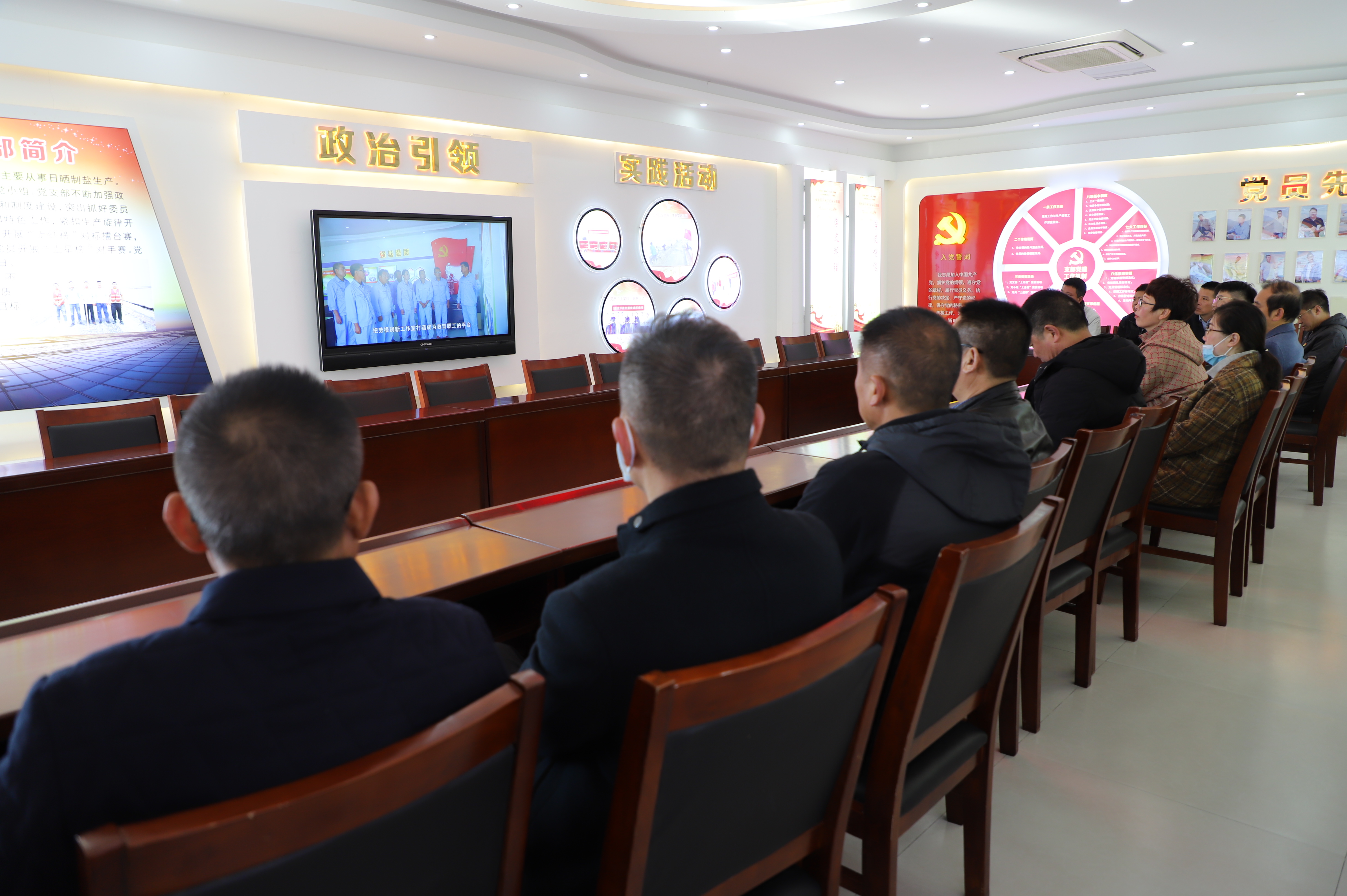 會前,各單位支部書記先后參觀了新河制鹽八班“三組聯(lián)建”示范班組、勞模創(chuàng)新工作室黨支部、新河制鹽黨支部活動室。