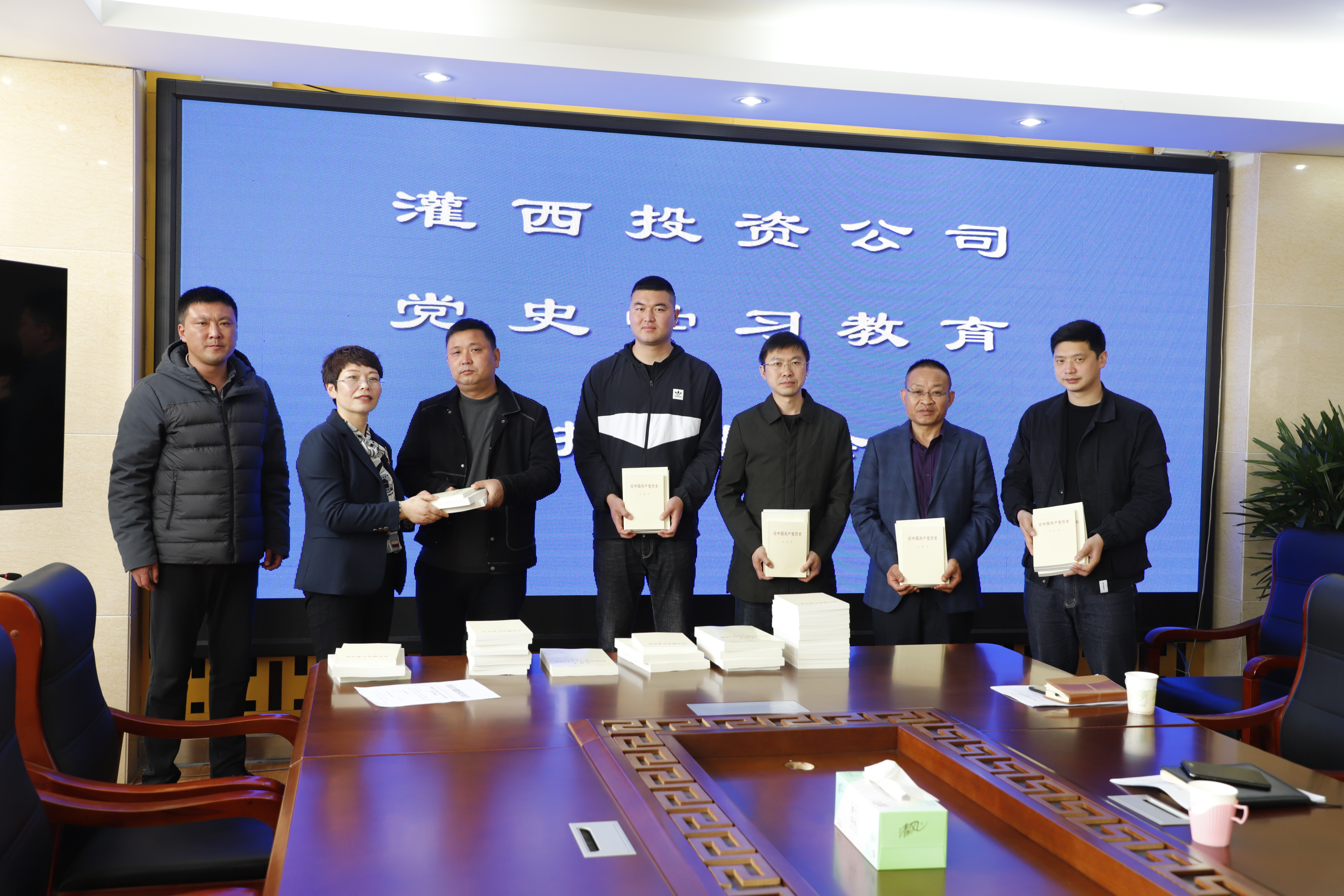 會(huì)議結(jié)束,黨委副書(shū)記王宏贈(zèng)送黨史學(xué)習(xí)書(shū)籍給各個(gè)支部。(靳靜)
