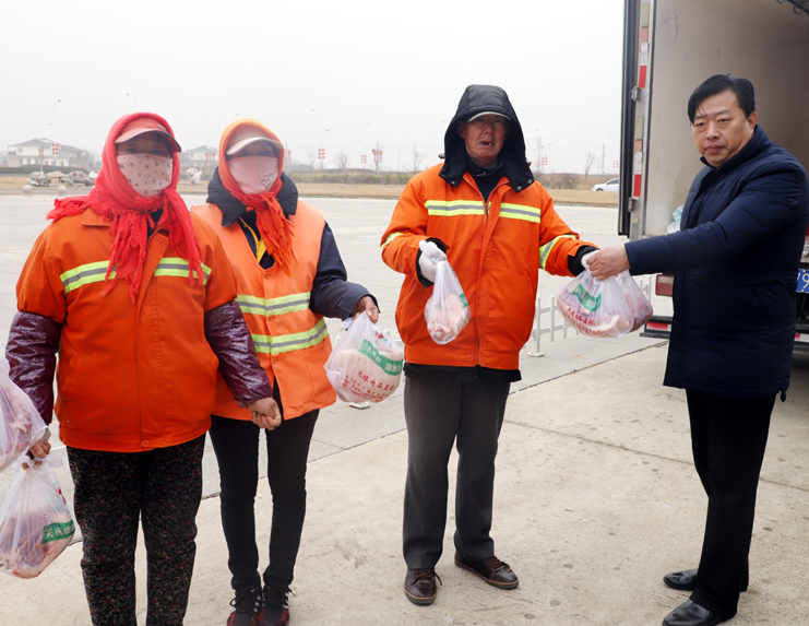 市總工會一行首先向身著環衛工馬甲排成整齊隊伍的40余名南翼一線環衛工人送上市總工會冬日里的問候。隨后,為南翼一線環衛工人發放了豬肉等慰問品,讓堅守在一線的環衛工人感受到市總工會的溫暖和關懷。