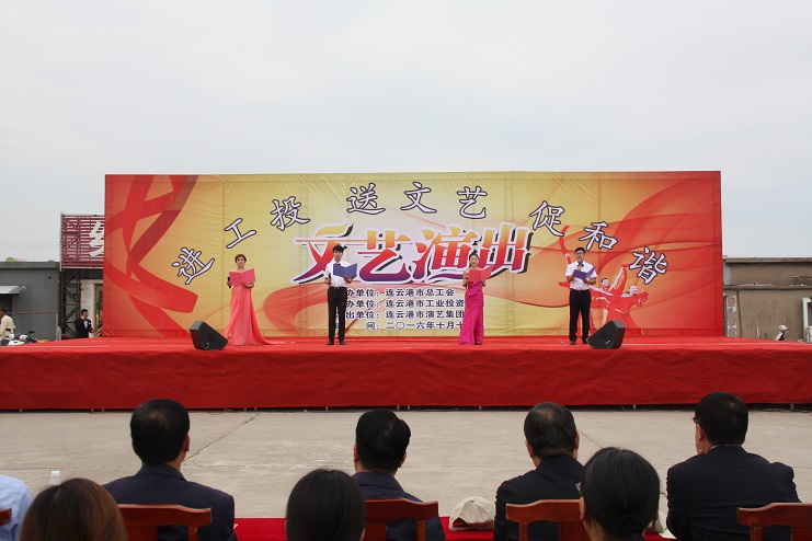 11日下午,灌西職工文化廣場人頭攢動,氣氛熱烈,“進工投送文藝促和諧”文藝演出在此舉行。此次演出由市總工會、連云港市工投集團主辦。市總工會副主席陳健、工投集團公司工會主席戴鴻鳴、灌西投資公司領(lǐng)導(dǎo)及職工群眾1000余人觀看演出。