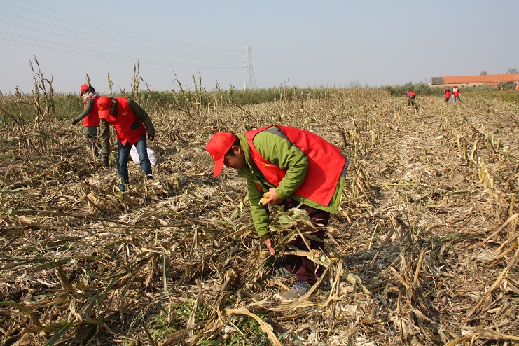目前,位于柴門居民點(diǎn)附近的灌西實(shí)業(yè)公司農(nóng)田已進(jìn)入作物收獲期,由于所種玉米已經(jīng)完全成熟,且經(jīng)歷了一次大風(fēng)降溫天氣,所以在機(jī)械進(jìn)場作業(yè)前,有部分玉米已經(jīng)掉落在了地上,如不及時撿拾,將造成極大浪費(fèi)。公司團(tuán)委在得知這一消息后,立即組織近十名青年志愿者利用中午休息時間,到該公司農(nóng)田開展撿拾散落玉米志愿服務(wù)活動。活動中,大家手拿編織袋,排成橫排仔細(xì)搜尋并緩慢向前推進(jìn)。由于玉米皮與秸稈顏色相近且混雜在一起很難分辨,因此大家在撿拾過程中不僅需要認(rèn)真搜尋,有時還需要彎腰翻動秸稈,以最大限度的不遺漏任何一個散落的玉米。