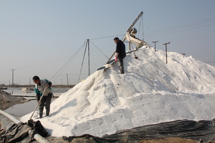 在4班現(xiàn)場,我們看到“唐三零”操作手正在嫻熟的駕駛著機(jī)器在鹽池內(nèi)緩緩移動,以認(rèn)真的態(tài)度,飽滿的熱情進(jìn)行著扒鹽工作。在不遠(yuǎn)處的鹽廩上,雪白的原鹽正通過扒鹽篩匯集而下,大廩工也不時的用分離板進(jìn)行疏導(dǎo)工作,潔白晶瑩的原鹽蔚然成廩。為了確保原鹽質(zhì)量,生產(chǎn)服務(wù)公司化驗室的工作人員還在扒鹽現(xiàn)場對鹽質(zhì)進(jìn)行跟蹤監(jiān)測。據(jù)介紹,在扒鹽設(shè)備上,今年日曬制鹽公司除了全面推廣使用五寸管道扒鹽外,又進(jìn)行了創(chuàng)新,將原來鹽、鹵分離篩上帆布引流裝置改為管道引流,這不僅有效降低了引流裝置的損壞幾率,減少了維修成本,更提高了設(shè)備的使用安全性。據(jù)了解,新河、埒南兩個制鹽分公司計劃共投入8臺扒鹽機(jī)組到此次扒鹽工作中來,目前已有七臺機(jī)組陸續(xù)出鹽,最后一臺機(jī)組也將在近日投入扒鹽工作,為原鹽銷售工作的正常有序開展提供保證。(封楊)