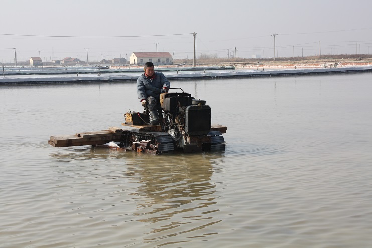 日前,筆者在走訪日曬制鹽公司時看到,在埒南制鹽分公司七班的鹽池內(nèi),一臺“唐三零”扒鹽機(jī)正在進(jìn)行扒鹽工作,池埝上機(jī)泵運(yùn)作時的轟鳴聲回蕩在鹽灘上,標(biāo)志著日曬制鹽公司今年的春扒戰(zhàn)役正式打響。