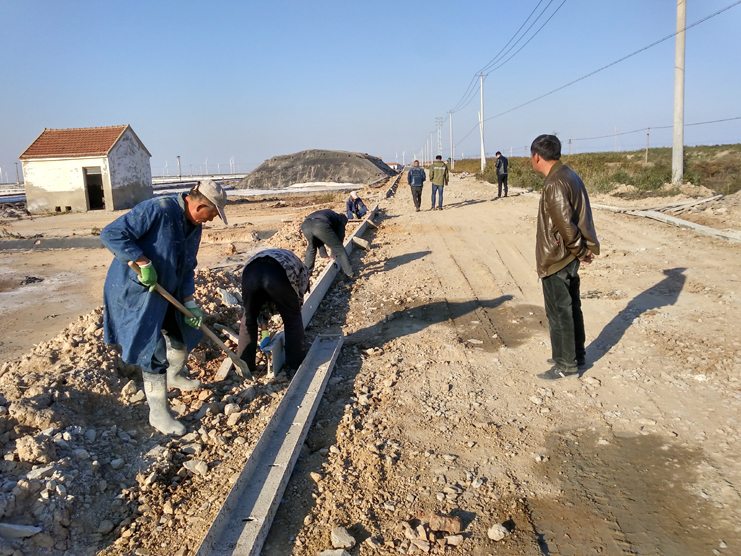 10月30日,在新河制鹽分公司一期0至8班運(yùn)鹽道路上,只見一臺(tái)挖掘機(jī)正在進(jìn)行道路平整工作,遠(yuǎn)處一輛混凝土攪拌車緩緩駛來,幾名工人正操控機(jī)械對(duì)即將凝固的水泥路面進(jìn)行打磨。據(jù)了解,目前正在施工的是新河制鹽分公司一期運(yùn)鹽路升級(jí)改造工程,該工程路段全長(zhǎng)2400米,其中路基6.5米,在原路基基礎(chǔ)上擴(kuò)寬了1.2米,水泥路面6米,便于運(yùn)鹽車輛會(huì)車通行,該工程預(yù)計(jì)將在十一月中旬全部建成。