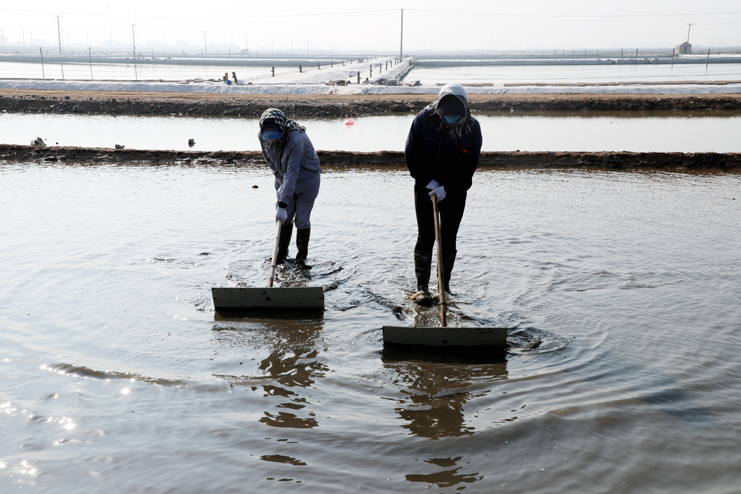 強化鹵水提制。密切關(guān)注天氣變化,緊緊抓住小滿前后的有利天時,科學安排走水線路,提高蒸發(fā)量的利用率。通過四輪壓格機器反復壓制整治滲漏池板,減少池板的鹵水滲漏。強化“三雨”操作,嚴格的塑池管理,加強塑布更新和修補,嚴控跑冒滴漏。提高公司灘地綜合利用率,充分利用廩基、排淡溝道等有效面積,利用高濃度淋板水,小鹽化鹵等窮制鹵措施,提制飽和鹵水,提升制鹵量。大力推廣應用先進的制鹵工藝,保障產(chǎn)出高質(zhì)的海水鹵。