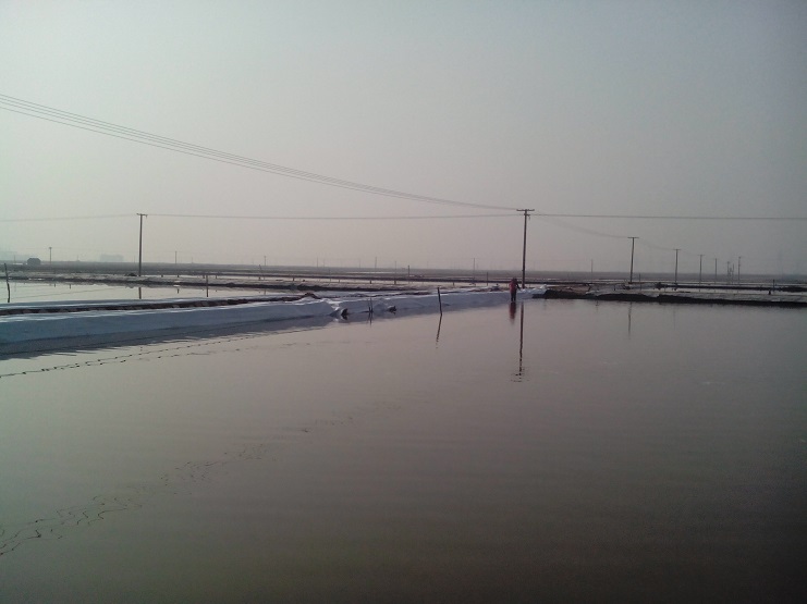 實業公司制鹽分公司,海鹽基地結晶區改造已近尾聲,灘場舊貌換新顏,放眼望去,海鹽基地灘場一片齊整。