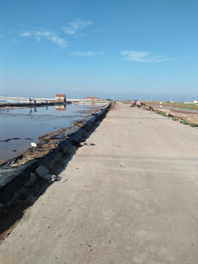 進人8八班二期,一派緊張勞作的場景映人眼簾。工人們正忙于修整大廩基。 近來,天氣炎熱,陰晴不定,給日曬制鹽新河分公司生產工作帶來不便。新河制鹽職工本著早五晚七的工作時,斗酷暑、避高溫,搶修灘。這不!新河八班提前把大廩基修整工作擺上議事日程。十名男女職工齊聚二期大廩,有運土打埝的、有挖泥培土的、有拖整雜物的、有挖溝整平的、有拉布苫埝,看得出分工明確,各有所為,個個干得心無旁騖,大汗淋漓。 該班大池道鋪石子,浮板綁皮塑板,塘頭下灣管,大廩基修整,抗災工程,灘場文明等工作樣樣走在前。