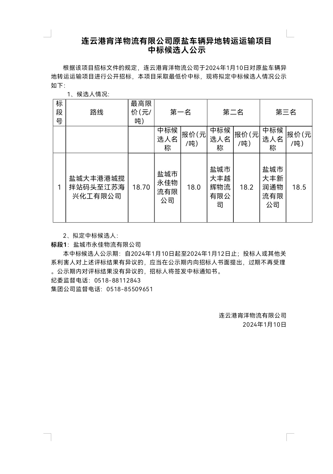 連云港宵洋物流有限公司原鹽車輛異地轉(zhuǎn)運(yùn)運(yùn)輸項(xiàng)目中標(biāo)候選人公示