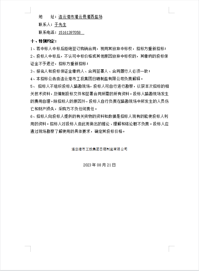 日曬制鹽有限公司管道接頭招標(biāo)公告