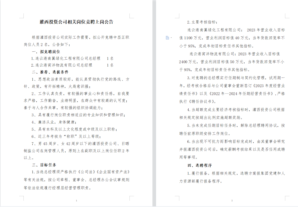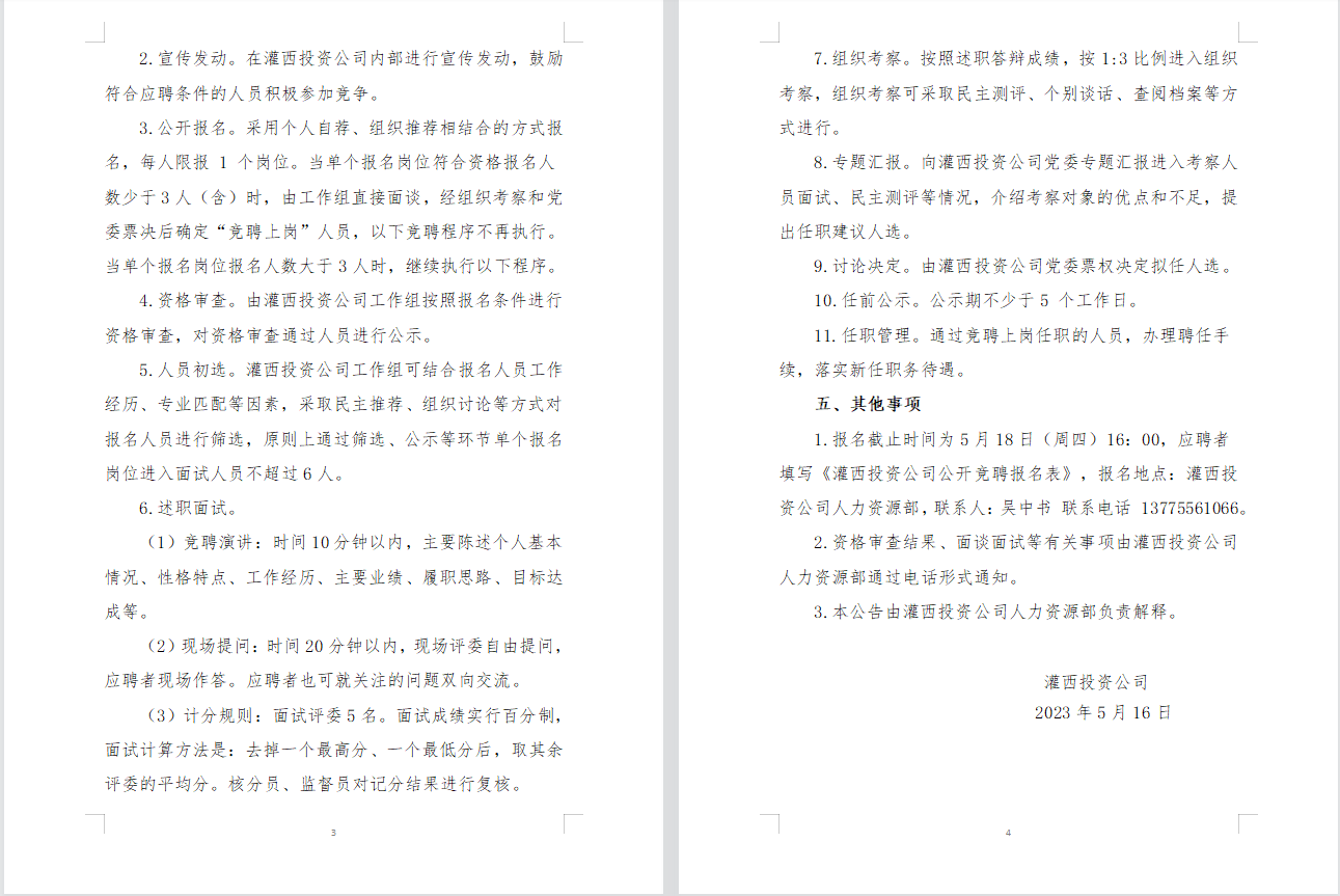 灌西投資公司相關(guān)崗位競(jìng)聘上崗公告