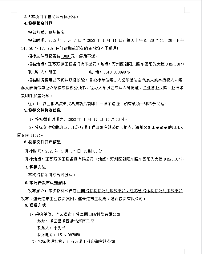 連云港市工投集團(tuán)日曬制鹽有限公司鹽膜招標(biāo)公告