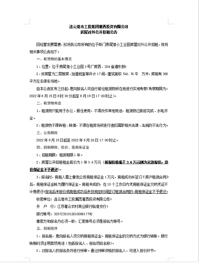連云港市工投集團(tuán)青口投資有限公司