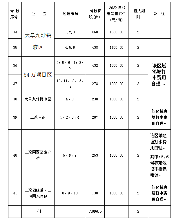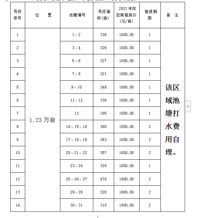 一、競租池塘位置、號(hào)段劃分、競租底價(jià)
