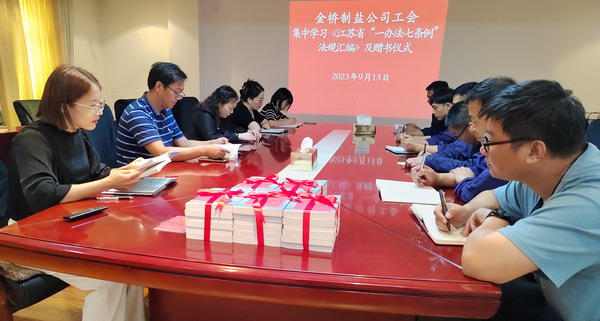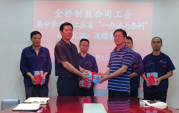 為落實市總及集團(tuán)工會相關(guān)要求, 9月13日,我公司工會舉辦集中學(xué)習(xí)《江蘇省“一辦法七條例”法規(guī)匯編》活動及贈書儀式。公司工會負(fù)責(zé)人,各分會、人資部門、安全部門負(fù)責(zé)人,部分職工代表參加。