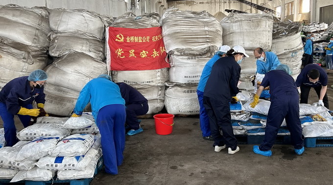6月6日-6月7日,我公司黨委開(kāi)展“我為黨旗增光添彩”志愿服務(wù)活動(dòng)。機(jī)關(guān)支部共30名黨員協(xié)助車間整理庫(kù)房,共整理成品鹽130余噸。活動(dòng)的開(kāi)展進(jìn)一步發(fā)揮了“兩個(gè)作用”,積極踐行了志愿服務(wù)精神,為車間一線辦實(shí)事、解難題。(金宣)