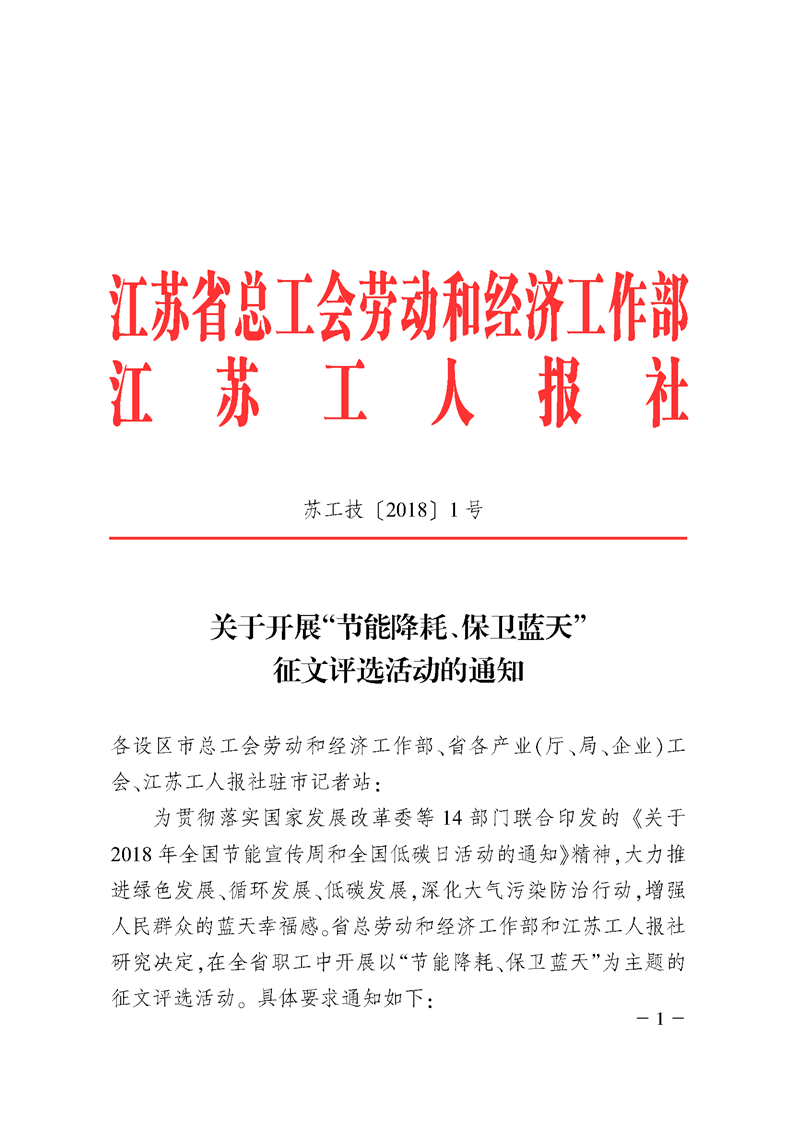 關(guān)于開展“節(jié)能降耗、保衛(wèi)藍天”征文評選活動的通知