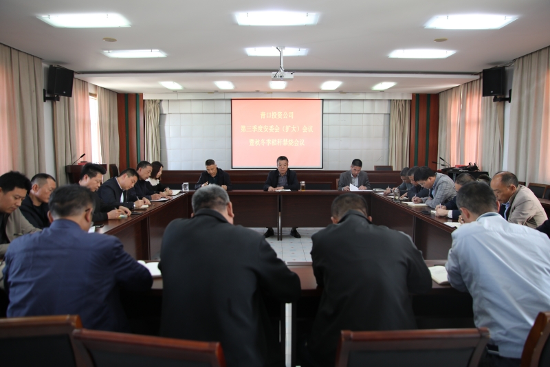 10月23日下午,青口投資公司召開三季度安委會(擴大)會議暨秸稈禁燒會議。公司黨委書記、董事長、總經理史祥平,副總經理楊青松,各單位負責人、安全員以及安委會成員參加會議。
