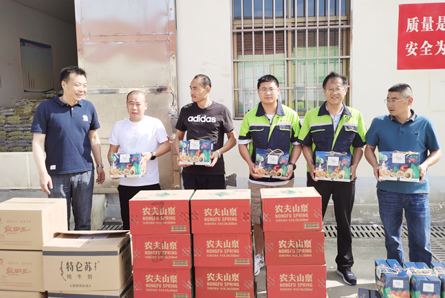 ? ? ? ?7月30日上午,公司領導班子成員分組帶著綠豆、白糖、礦泉水等防暑降溫物品,到各基層單位為職工們送去絲絲清涼和滴滴關愛。在慰問現(xiàn)場,領導們親自為一線職工送上降溫物品,并叮囑他們要提高自我保護意識和安全防范能力,合理安排工作時間,注意防暑休息。