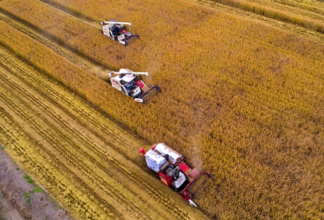 ? ?10月28日,青口投資公司的萬(wàn)畝鹽堿地標(biāo)準(zhǔn)化農(nóng)田里,有機(jī)水稻示范點(diǎn)率先開(kāi)鐮收割,現(xiàn)代化收割機(jī)正開(kāi)足馬力進(jìn)行水稻收割作業(yè),到處一派繁忙喜悅的秋收景象。