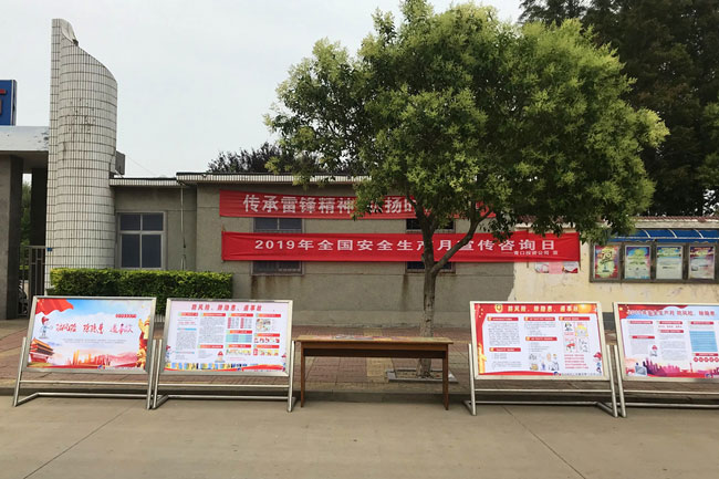 6月1 3 日上午,公司舉行以 “ 防風(fēng)險、除隱患、遏事故 ”為主題的“安全生產(chǎn)月”宣傳咨詢?nèi)栈顒印;顒蝇F(xiàn)場,張貼安全月主題掛圖12幅,展板5塊,發(fā)放《 營造安全環(huán)境,維護社會穩(wěn)定 》、《 應(yīng)急管理基礎(chǔ)知識 》、《 防風(fēng)險、除隱患、遏事故 》、《 用電安全十不準 》 、《急救自救與互救知識》 等宣傳單 4 00余張。