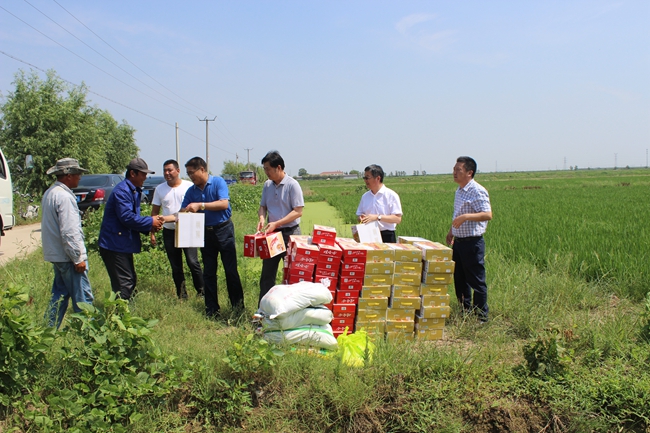 連日來,高溫酷暑,驕陽似火。 7月20日上午,集團(tuán)公司工會(huì)主席劉承志一行,帶著清涼物品,來到大新農(nóng)場(chǎng)一線慰問,正在田間勞作的條田工抹著汗水接過領(lǐng)導(dǎo)手中的物品,劉主席親切叮囑辛勤勞作的職工要注意勞逸結(jié)合,加強(qiáng)“夏季五防”保護(hù),合理安排工作時(shí)間,公司領(lǐng)導(dǎo)的深切關(guān)懷使一線職工深受感動(dòng)。