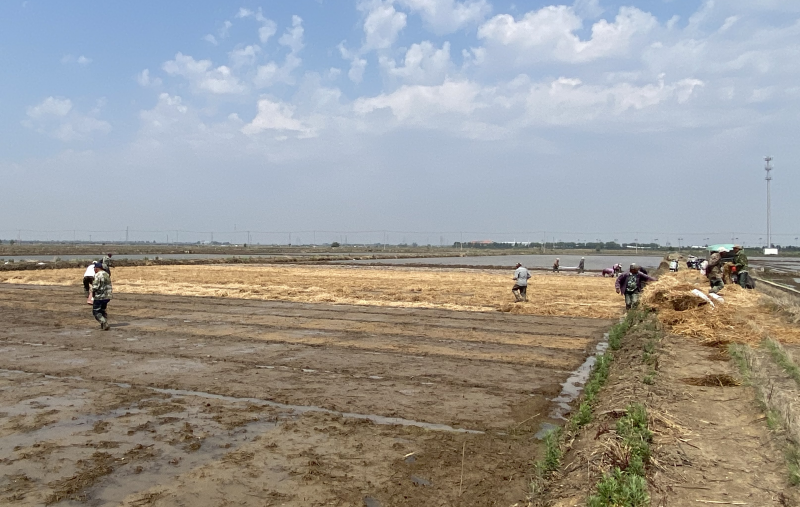 6月10日,在大新農(nóng)場的秧板田里,新品種“稻花香2號”啟動落谷作業(yè),撒種、蓋草、鋪膜,處處都是繁忙景象,成了綠色田野上的一道亮麗風景線。