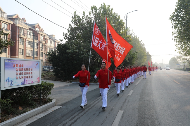 10月20日清晨,米業(yè)營(yíng)銷公司聯(lián)合海州區(qū)微馬隊(duì)共同開(kāi)展健步走活動(dòng),吸引了共三百余名健身愛(ài)好者參與其中。本次活動(dòng)旨在進(jìn)一步宣傳提高“鹽田玉”品牌的知名度,讓廣大市民在積極運(yùn)動(dòng)的過(guò)程中認(rèn)識(shí)“鹽田玉”、了解“鹽田玉”,拓寬“鹽田玉”宣傳渠道,提倡積極健康的生活方式,倡導(dǎo)廣大市民吃優(yōu)質(zhì)大米,過(guò)健康生活。本次健步走從海州區(qū)石棚山景區(qū)廣場(chǎng)出發(fā),內(nèi)環(huán)朐陽(yáng)門、海州古城、秦東門大街返回,全程3.6公里。?(顧?益)
