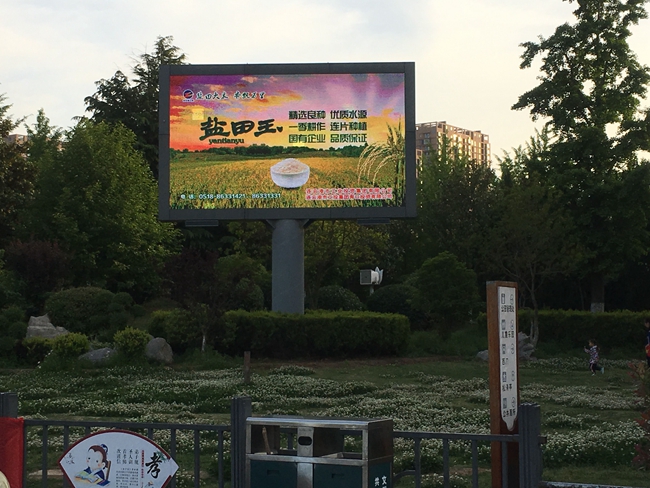 近日,米業(yè)營(yíng)銷中心為了做好鹽田玉大米的品牌宣傳,在蒼梧綠園電子屏投放宣傳圖片。(劉楊)