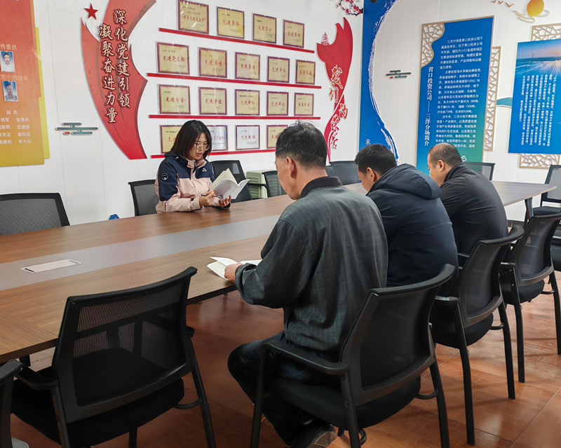 ? ? ? 4月30日下午,三洋分場黨支部組織全體在崗黨員原原本本學習《中國共產黨紀律處分條例》。自黨紀學習教育啟動以來,三洋分場黨支部不間斷組織黨員集中學習黨紀黨規(guī),推動黨員同志學紀、知紀、明紀、守紀,切實將思想和行動統(tǒng)一起來,為服務養(yǎng)殖生產和保障新能源項目推進凝聚力量。(三洋分場黨支部)