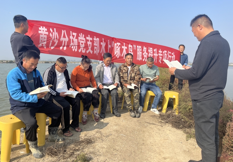 近日,黃沙分場黨支部開展水上“啄木鳥”服務(wù)提升行動,組織養(yǎng)殖戶黨員和技術(shù)能手聚在塘頭學(xué)習(xí)黨的二十大報(bào)告,開展養(yǎng)殖技術(shù)培訓(xùn)和生產(chǎn)服務(wù),切實(shí)打通黨建引領(lǐng)、服務(wù)養(yǎng)殖的“快速通道”。(盧伯斌)