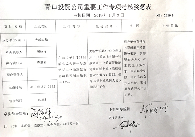 【表單考核】青口投資公司重要工作專項(xiàng)考核獎懲表