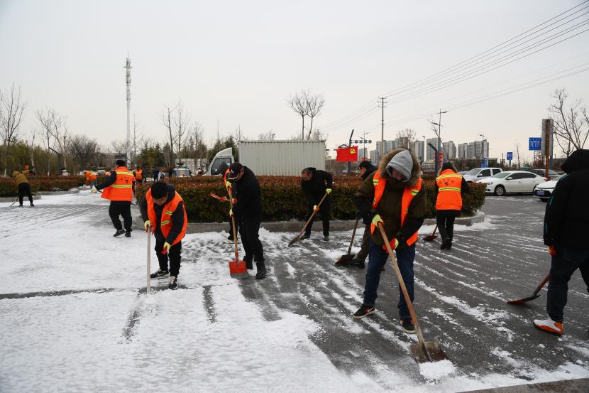 “不怕天寒地凍,就怕手腳不動。”公司領(lǐng)導(dǎo)班子身先士卒,帶頭上陣,即是指揮員,也是戰(zhàn)斗員,黨員干部齊行動,不等不靠,全面開展轄區(qū)內(nèi)積雪清掃工作,主動出擊、爭當(dāng)除雪保暢的“排頭兵”。充分發(fā)揮黨員先鋒模范作用和黨支部戰(zhàn)斗堡壘作用。大家團結(jié)協(xié)作、干勁十足,掃的掃、鏟的鏟、推的推,干的熱火朝天。忙碌的身影映襯著紅色臉龐,在冬天凜冽的寒風(fēng)中構(gòu)成了一道靚麗的臺北華茂風(fēng)景線。
